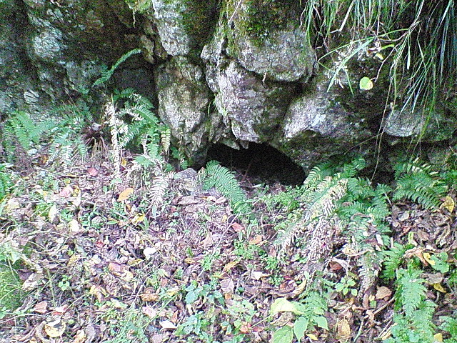 この神社を右手に進むと道の脇に不思議な穴が・・・。