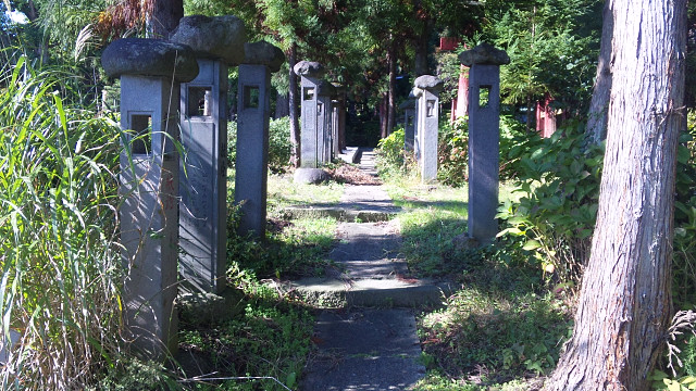 細長い道の途中途中に古い鳥居や灯篭が置いてあったような形跡があったので