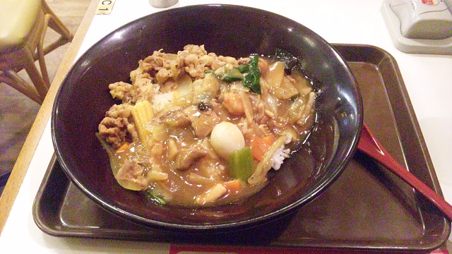 途中すき屋に寄り『牛合いがけ五目あんかけ丼』を頼んでみた。