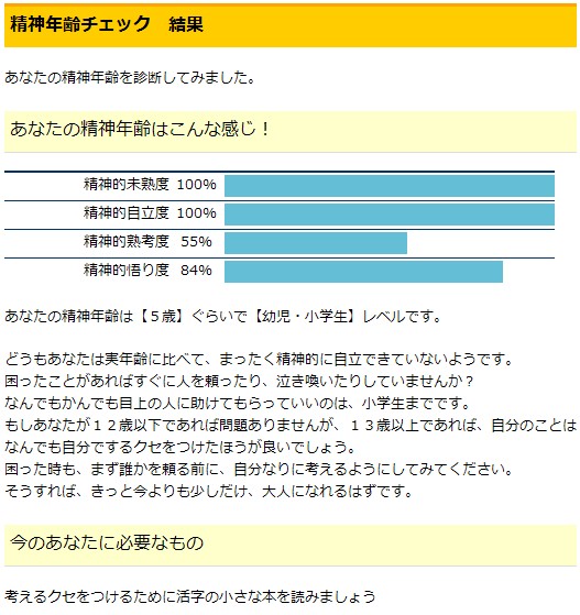 精神的未熟度と精神的自立度がどちらも100%って、何か矛盾してるような(;´Д`)