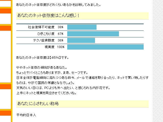 某掲示板でネット依存の心理テストのURLが張られてたのでやってみた。