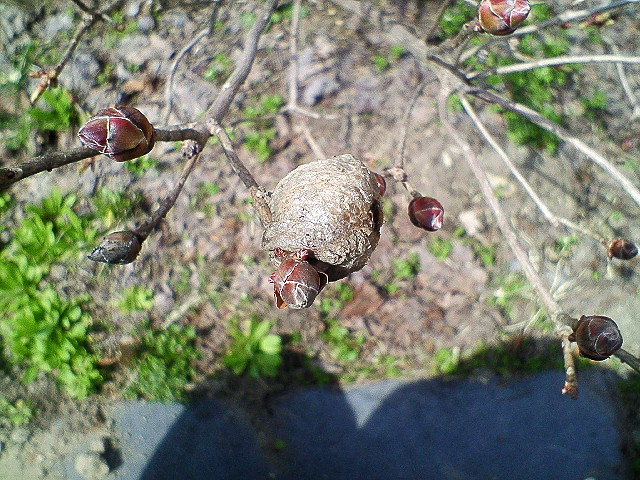 出店で買った物を、外で食べてる時に目の前にあったカマキリの卵。
